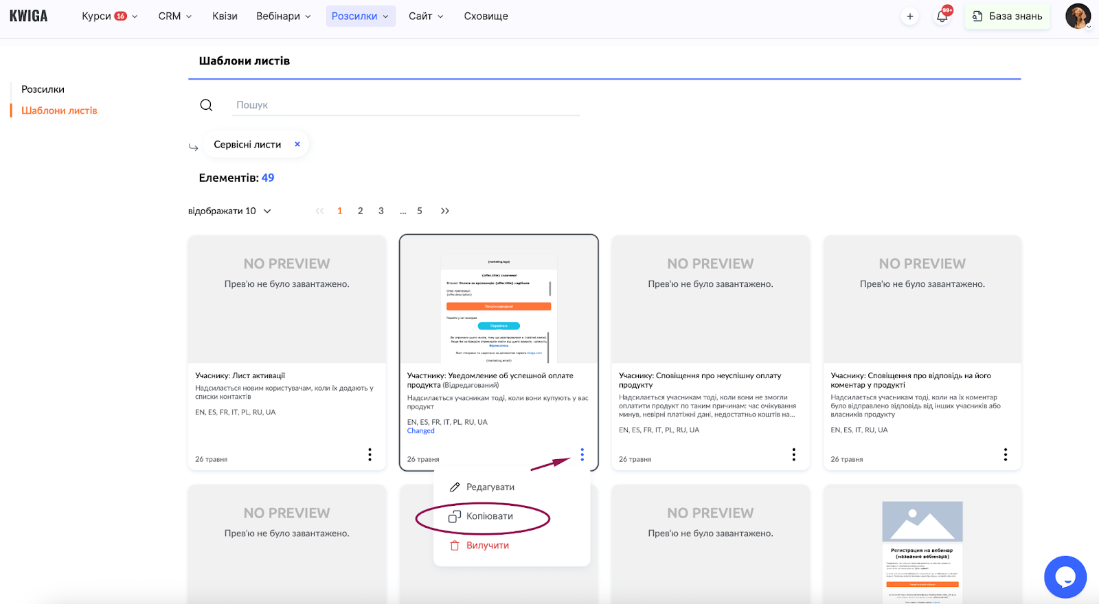 Звернуть увагу: щоб побачити копію сервісного шаблону, потрібно вийти з папки Сервісні листи.
