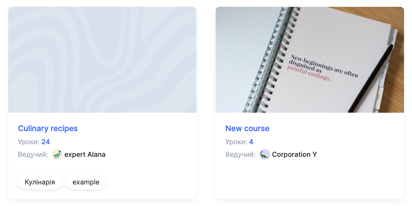 Курс може відображатися на сторінці школи як із заставкою, так і без неї. Варіант із превʼю виглядає значно привабливіше та професійніше, допомагаючи вашому курсу виділитися серед інших.