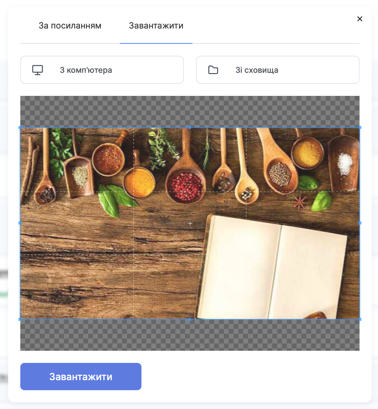 Примітка: Якщо потрібно, відкоригуйте область відображення у кроппері, щоб обрати найкращий фрагмент зображення перед тим як завантажити.