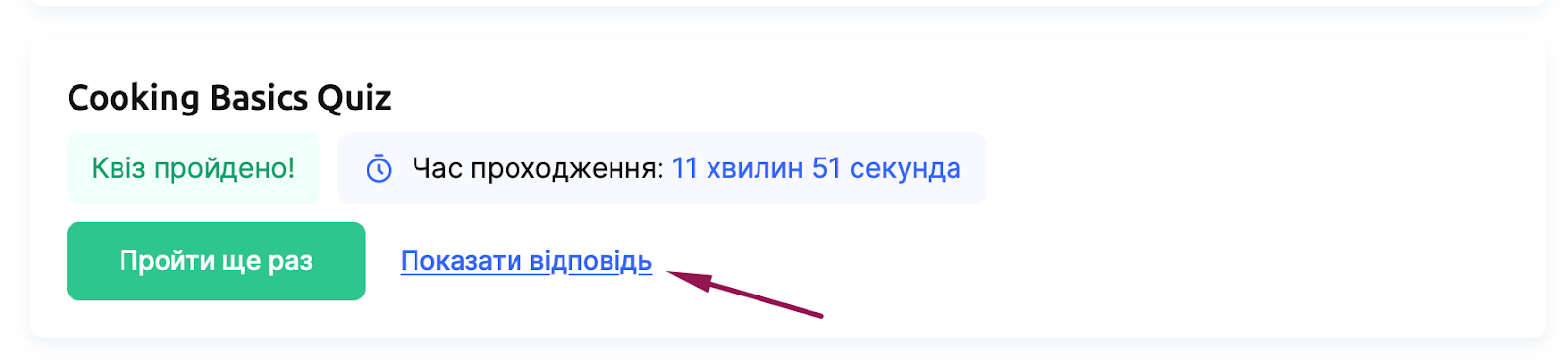 Зверніть увагу! Щоб учні бачили свої відповіді та коментарі після проходження квіза, потрібно увімкнути відповідні налаштування показу результатів. Детально про це читайте в статті Як налаштувати тест, щоб учень міг бачити свої відповіді.
