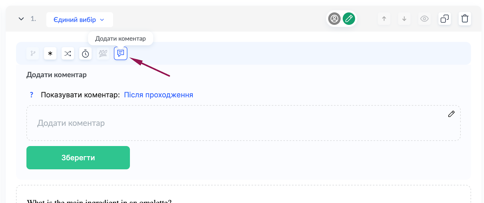 Коментарі до питань у тестах — це ефективний інструмент для швидкого зворотного зв'язку під час навчання.